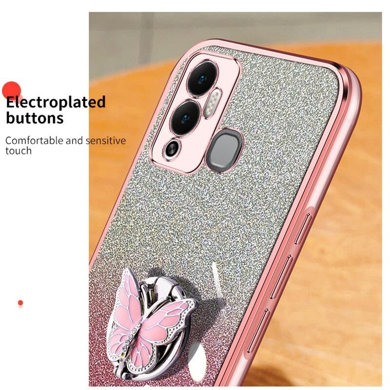 Για Infinix Hot 12 Play Plated βαθμιδωτή Glitter πεταλούδα κάτοχος TPU τηλέφωνο υπόθεση (ασημί)