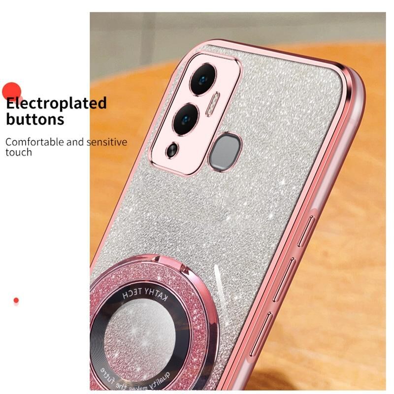 Για το Infinix Hot 12 Play Plated Gradient Glitter Round κάτοχος TPU τηλέφωνο υπόθεση (ροζ)
