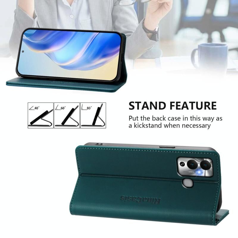 Θήκη τηλεφώνου δερμάτινη με μαγνητική απορρόφηση και διπλή πτύχωση για Infinix Hot 12 Play RC01 (Μέντας Πράσινο)