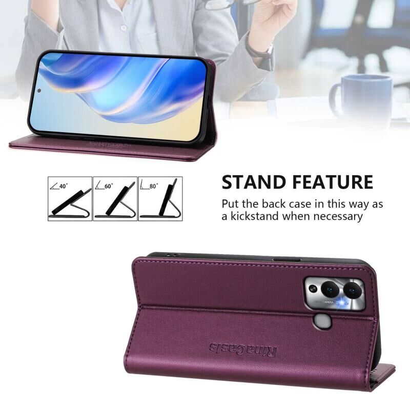 Θήκη τηλεφώνου δερμάτινη με μαγνητική απορρόφηση και διπλή πτύχωση για Infinix Hot 12 Play RC01 (Βιολετί)