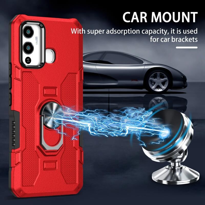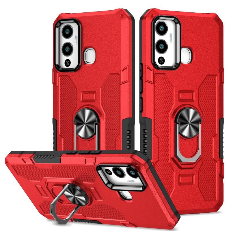Για το Infinix Hot 12 Play Ring Holder Armor Hybrid Phone Case (κόκκινο)