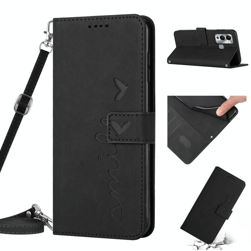 Για Infinix Hot 12 Play δέρμα αίσθηση καρδιά μοτίβο δερμάτινη θήκη τηλεφώνου με κορδόνι (μαύρο)