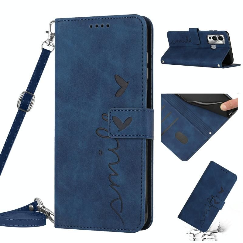 Για Infinix Hot 12 Play δέρμα αίσθηση καρδιά μοτίβο δερμάτινη θήκη τηλεφώνου με κορδόνι (μπλε)