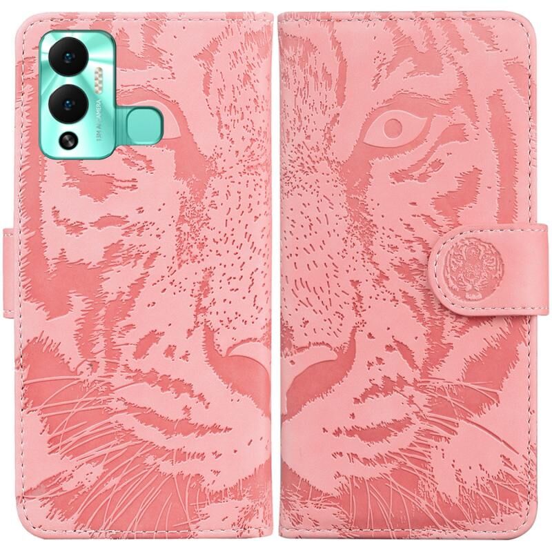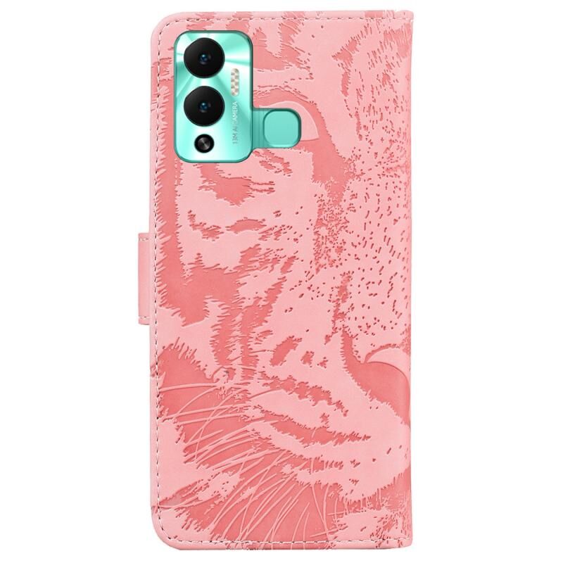 Για το Infinix Hot 12 Play Tiger ανάγλυφο μοτίβο οριζόντια Flip δέρμα τηλέφωνο υπόθεση (ροζ)