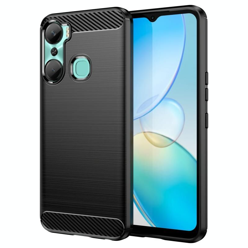 Για Infinix Hot 12 Pro βουρτσισμένη υφή Carbon Fiber TPU τηλέφωνο υπόθεση (μαύρο)