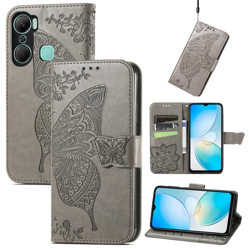 Θήκη τηλεφώνου από δέρμα με ανάγλυφο σχέδιο πεταλούδας και λουλουδιών για Infinix Hot 12 Pro (Χρυσό Ρόδι)
