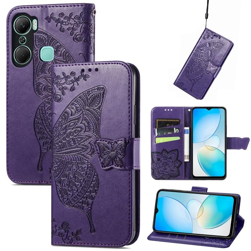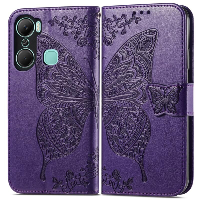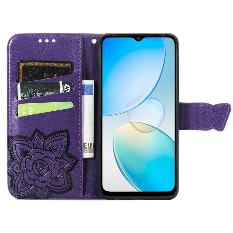 Θήκη τηλεφώνου από δέρμα με ανάγλυφο σχέδιο πεταλούδας και λουλουδιών για Infinix Hot 12 Pro (Χρυσό Ρόδι)
