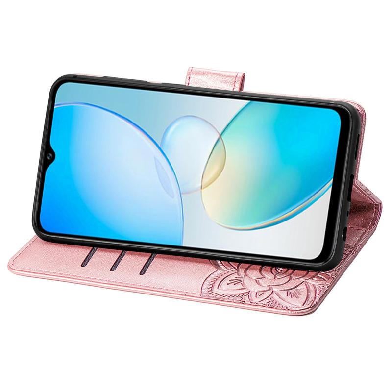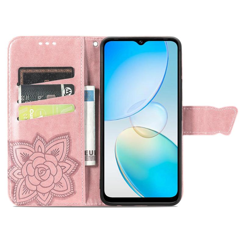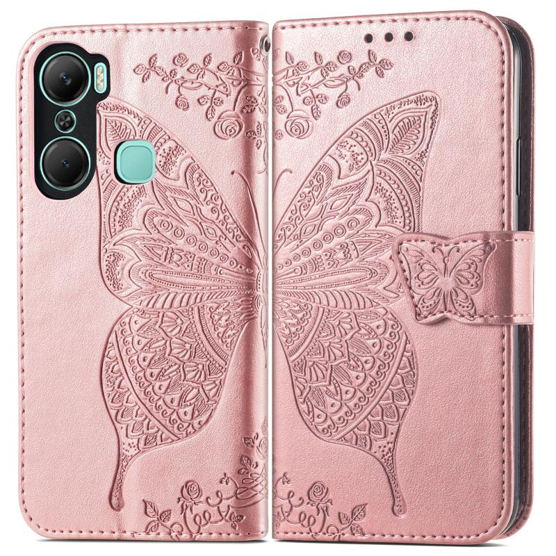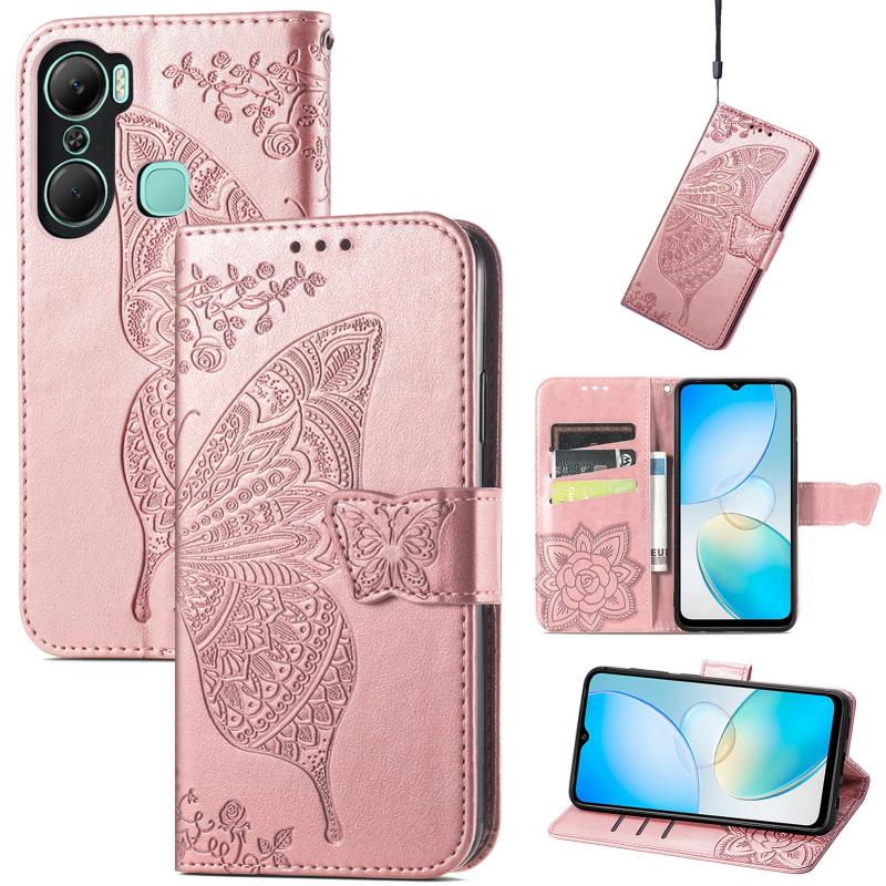 Θήκη τηλεφώνου από δέρμα με ανάγλυφο σχέδιο πεταλούδας και λουλουδιών για Infinix Hot 12 Pro (Χρυσό Ρόδι)