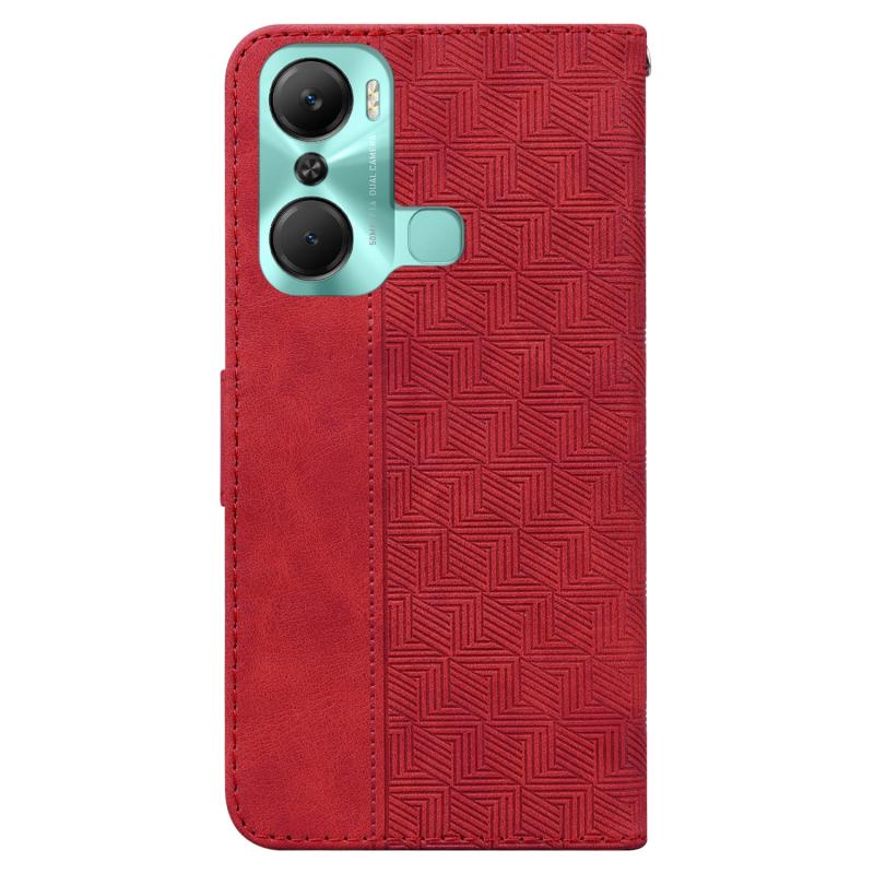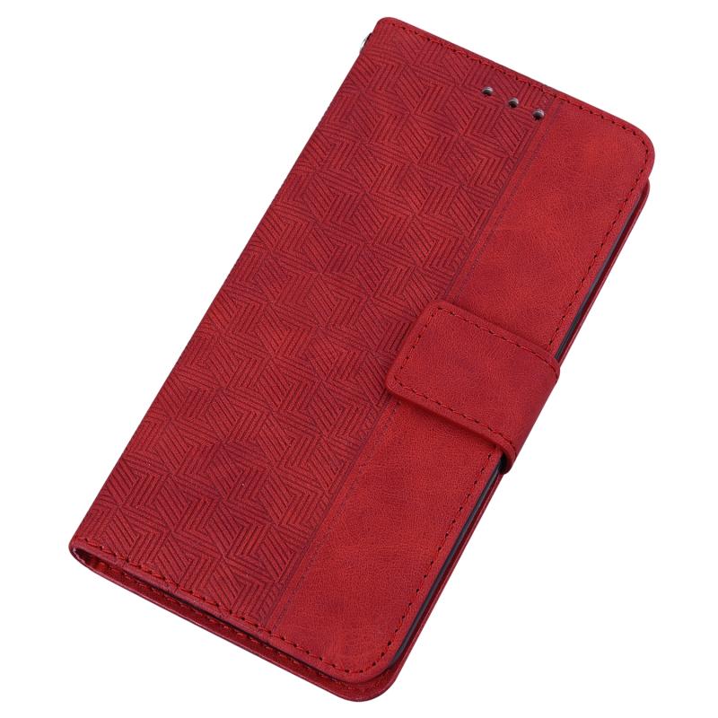Θήκη τηλεφώνου από δέρμα με ανάγλυφο γεωμετρικό σχέδιο, τύπου flip, για Infinix Hot 12 Pro (Κόκκινο)