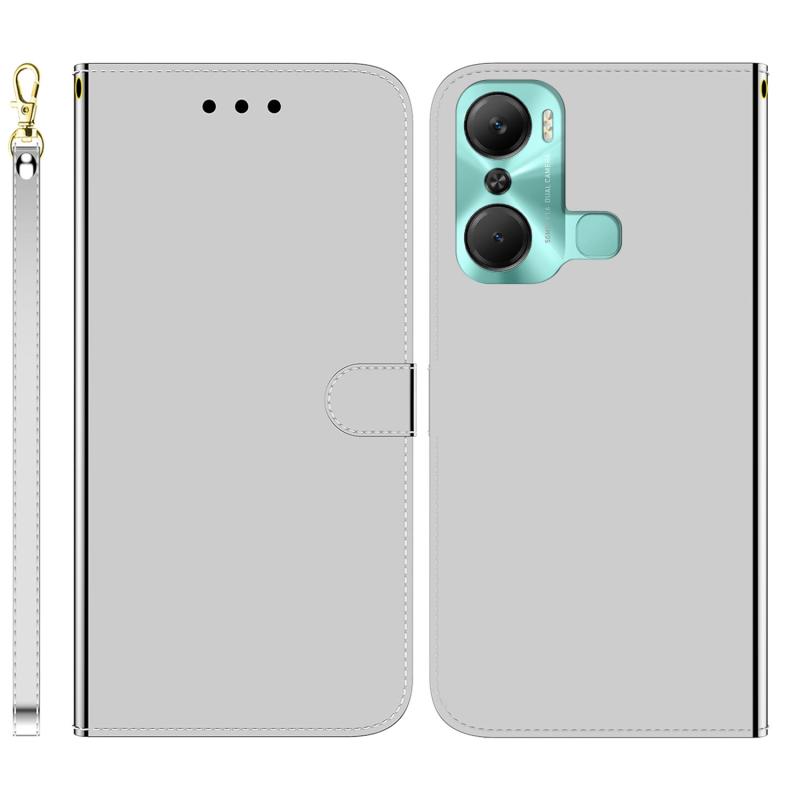 Θήκη τηλεφώνου από δερματίνη με καθρεφτισμένη επιφάνεια για Infinix Hot 12 Pro (Ασημί)
