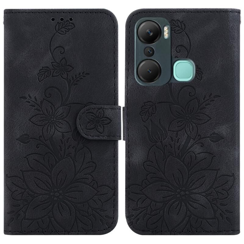 For Infinix Hot 12 Pro Lily Embossed Leather Phone Case(Black)