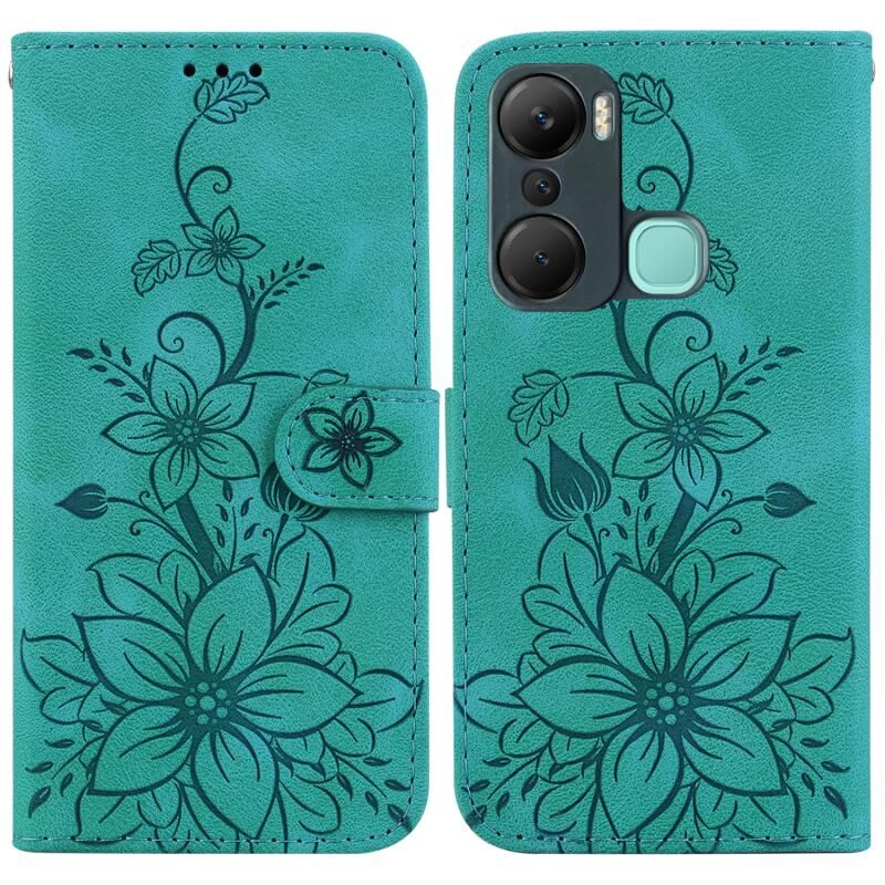 For Infinix Hot 12 Pro Lily Embossed Leather Phone Case(Green)