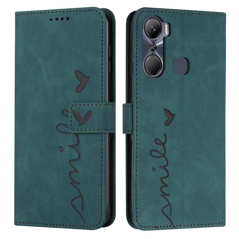 Θήκη τηλεφώνου από δέρμα με σχέδιο καρδιάς και αίσθηση δέρματος για Infinix Hot 12 Pro (Πράσινο)