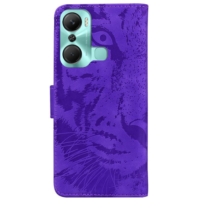 Θήκη τηλεφώνου δερμάτινη, οριζόντιας αναδίπλωσης, με ανάγλυφο σχέδιο τίγρης για Infinix Hot 12 Pro (Ροζ)