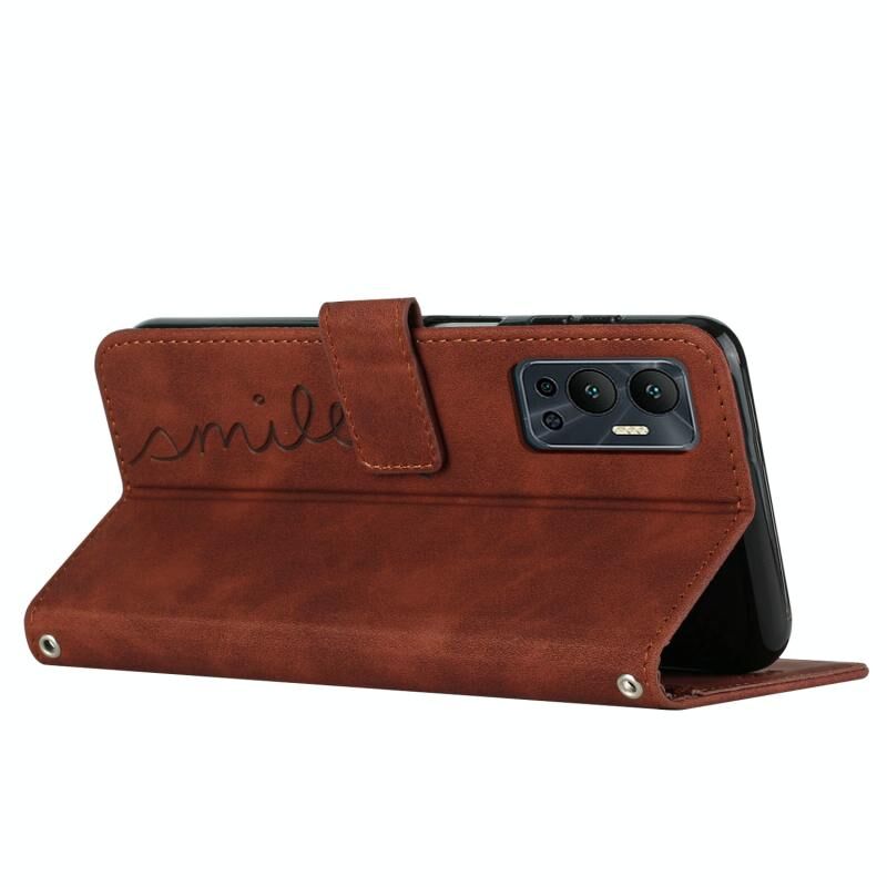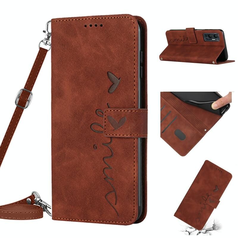 Για Infinix Hot 12 δέρμα αίσθηση καρδιά μοτίβο δερμάτινη θήκη τηλεφώνου με κορδόνι (καφέ)
