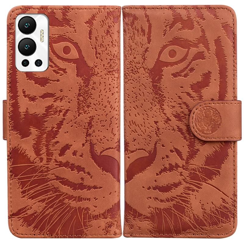 Για Infinix Hot 12 Tiger ανάγλυφο μοτίβο οριζόντια Flip υπόθεση τηλεφώνου δέρμα (καφέ)