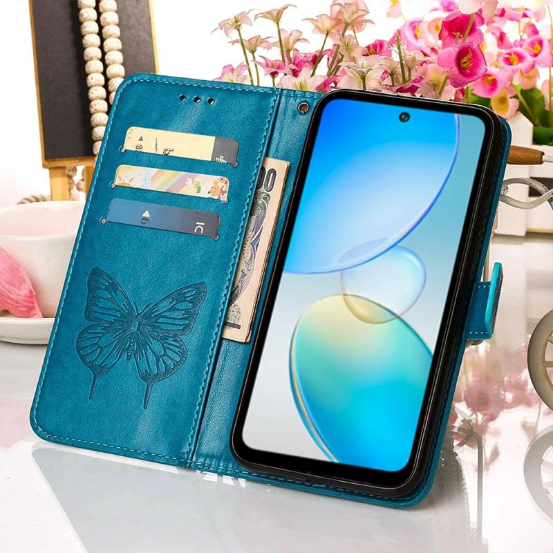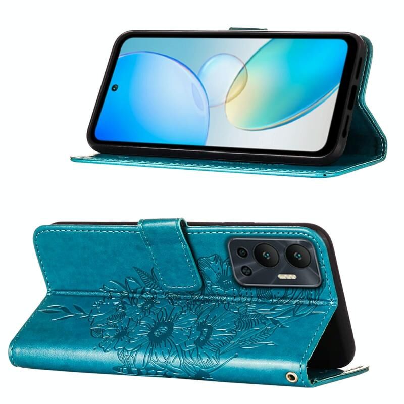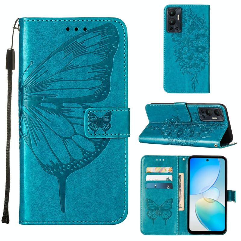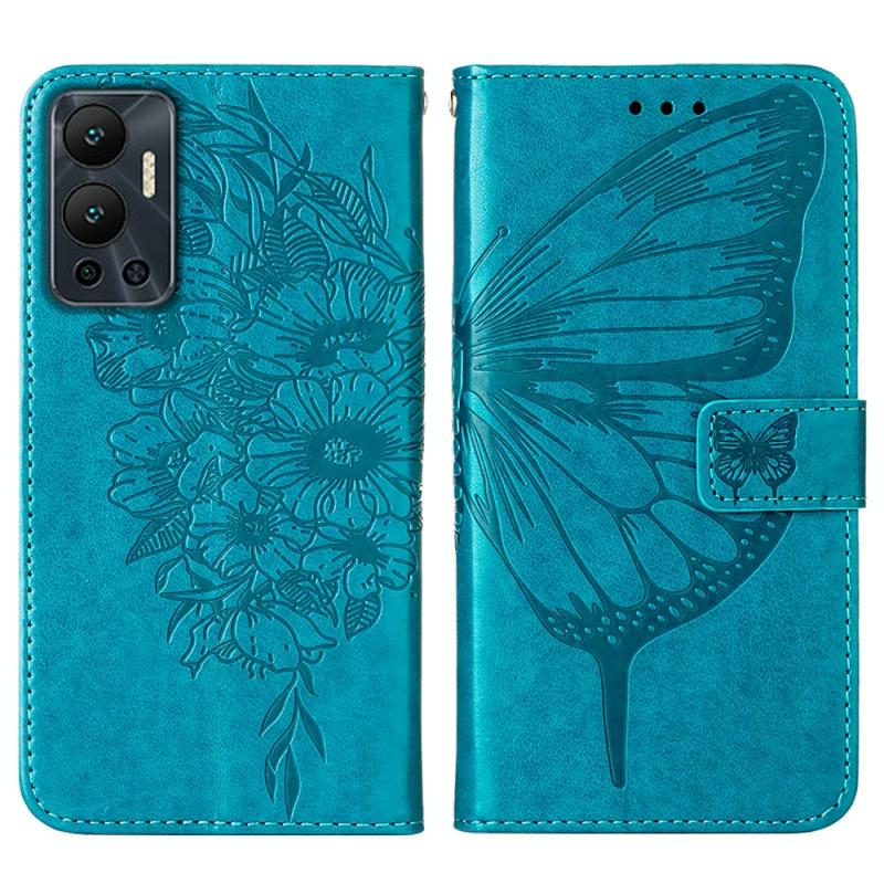 For Infinix Hot 12 X6817 Embossed Butterfly Flip Leather Phone Case(Blue)