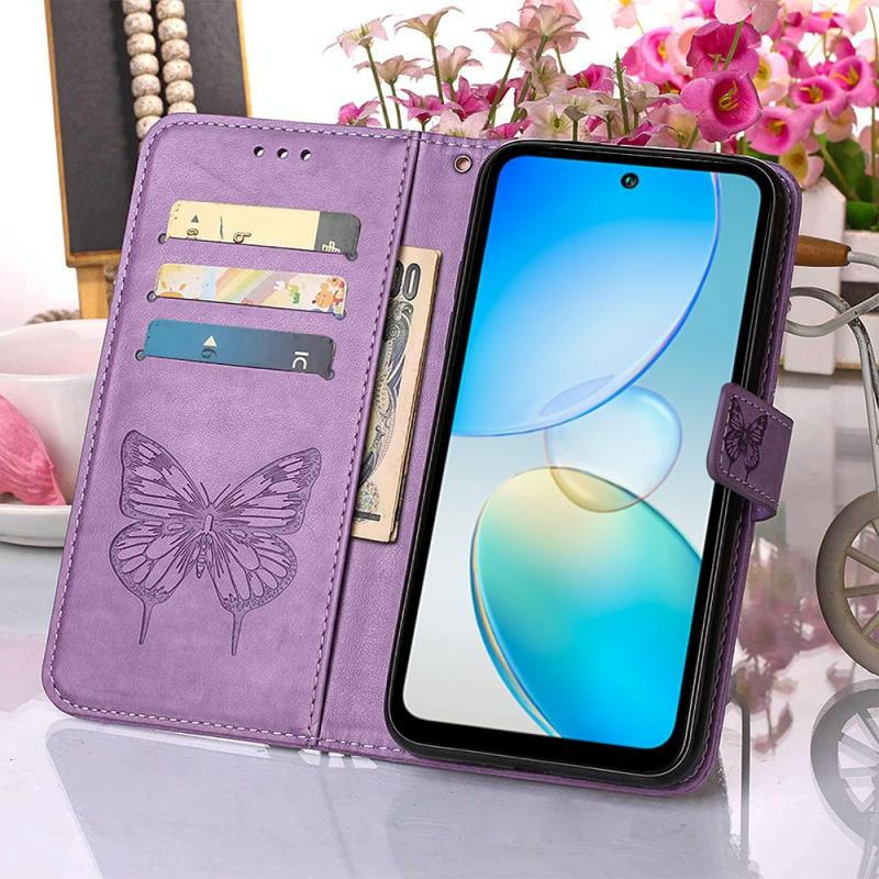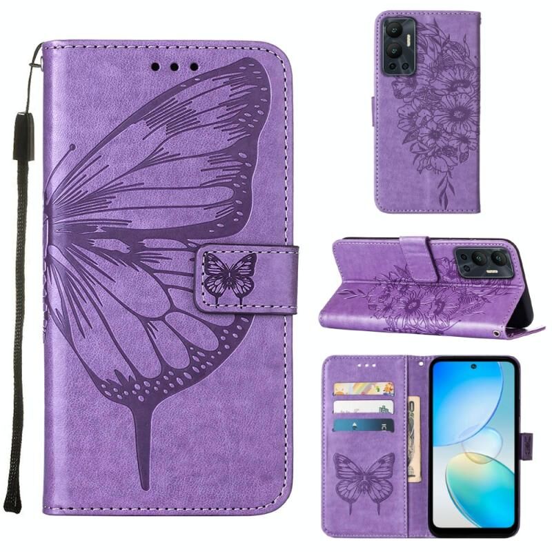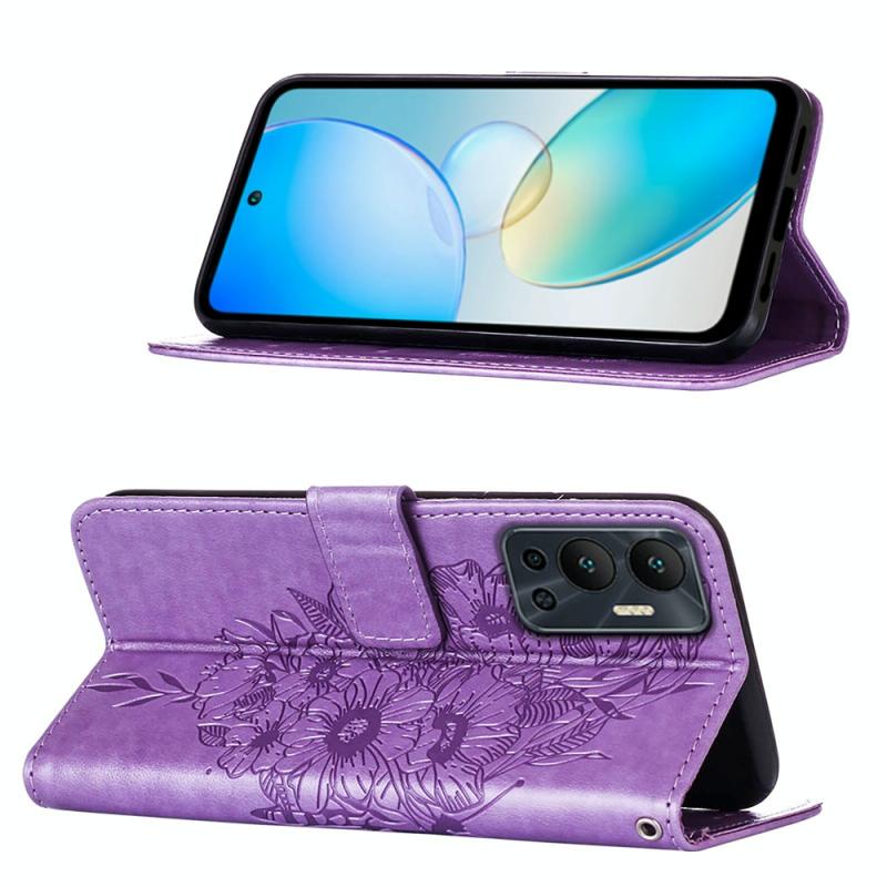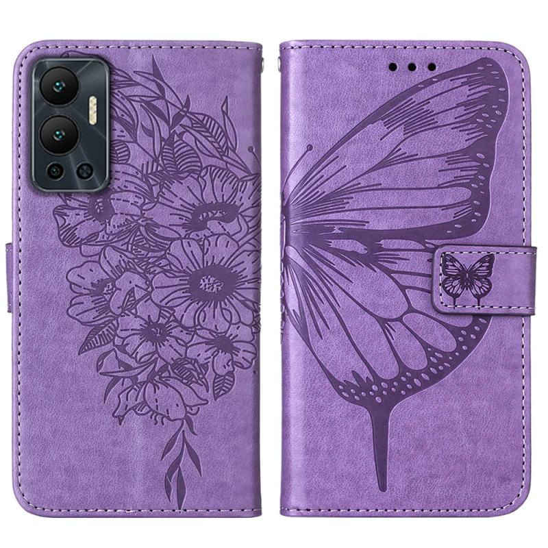 For Infinix Hot 12 X6817 Embossed Butterfly Flip Leather Phone Case(Purple)