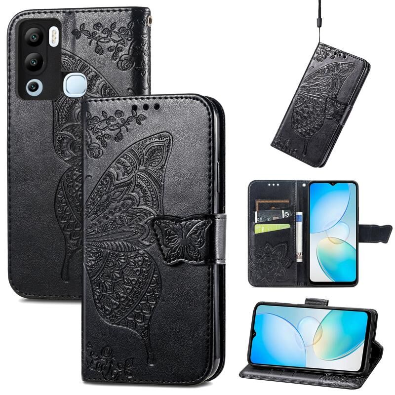 Θήκη τηλεφώνου από δέρμα με ανάγλυφο σχέδιο πεταλούδας και λουλουδιών για Infinix Hot 12i (Χρυσό ροζ)
