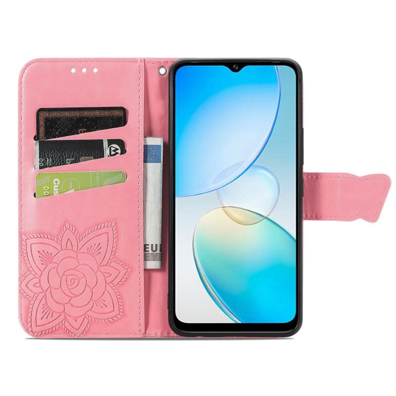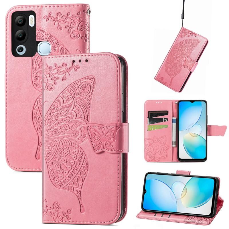 Θήκη τηλεφώνου από δέρμα με ανάγλυφο σχέδιο πεταλούδας και λουλουδιών για Infinix Hot 12i (Χρυσό ροζ)