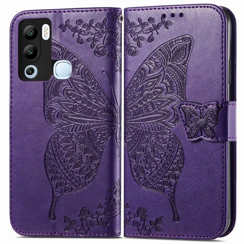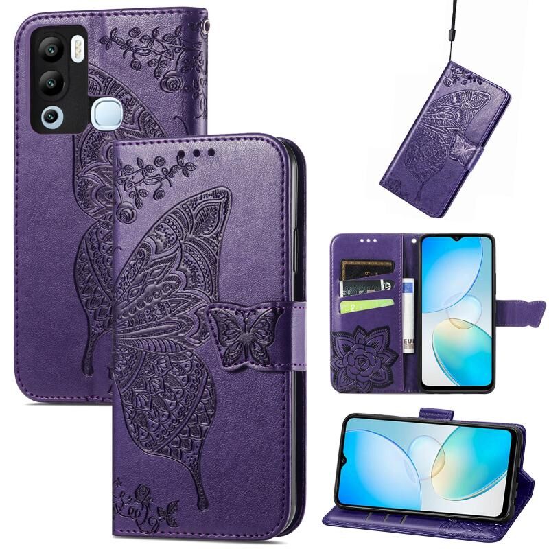 Θήκη τηλεφώνου από δέρμα με ανάγλυφο σχέδιο πεταλούδας και λουλουδιών για Infinix Hot 12i (Χρυσό ροζ)