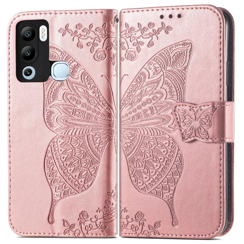For Infinix Hot 12i Butterfly Love Flower Embossed Leather Phone Case(Rose Gold)