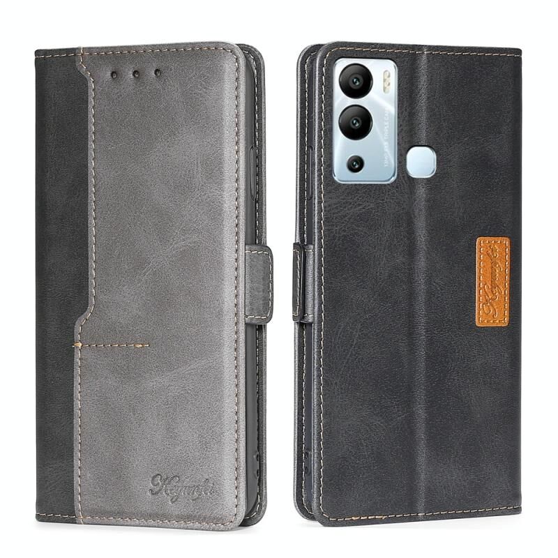 Για Infinix Hot 12i Αντίθετο χρώμα πλευρά πόρπη δερμάτινη θήκη τηλεφώνου (μαύρο + γκρι)