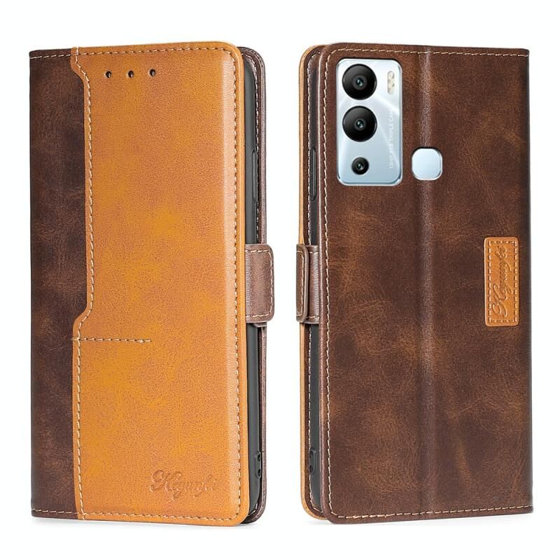 Για Infinix Hot 12i Αντίθετο χρώμα πλευρά πόρπη δερμάτινη θήκη τηλεφώνου (σκούρο καφέ + χρυσό)