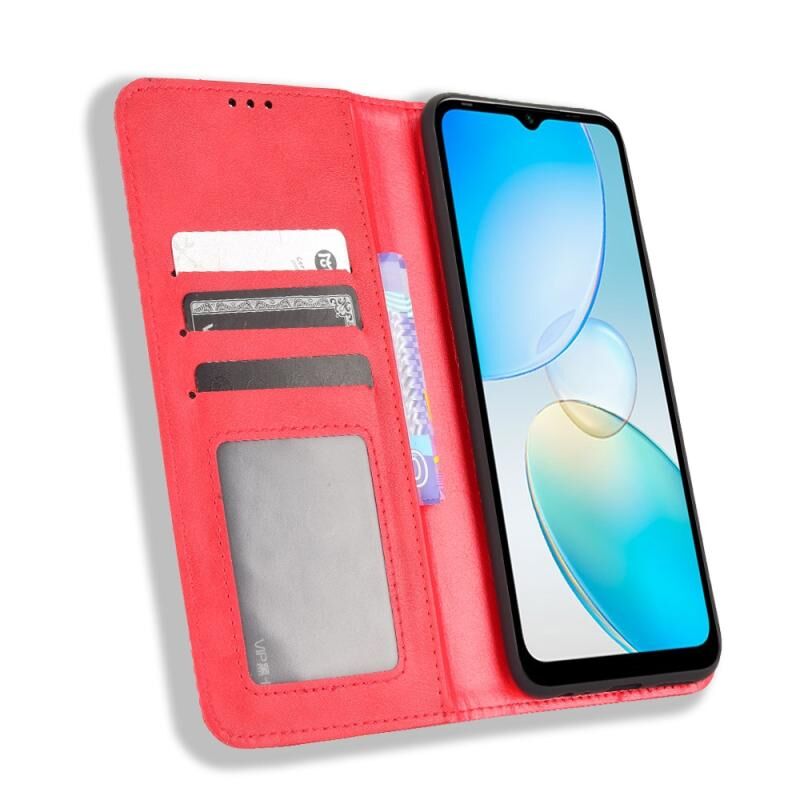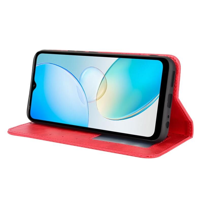 Για Infinix Hot 12i Μαγνητική πόρπη ρετρό υφή δερμάτινη θήκη τηλεφώνου (κόκκινο)