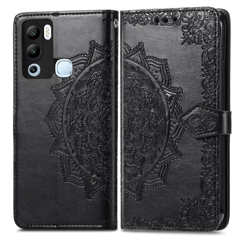 Για Infinix Hot 12i Mandala λουλούδι ανάγλυφο δερμάτινη θήκη τηλεφώνου (μαύρο)