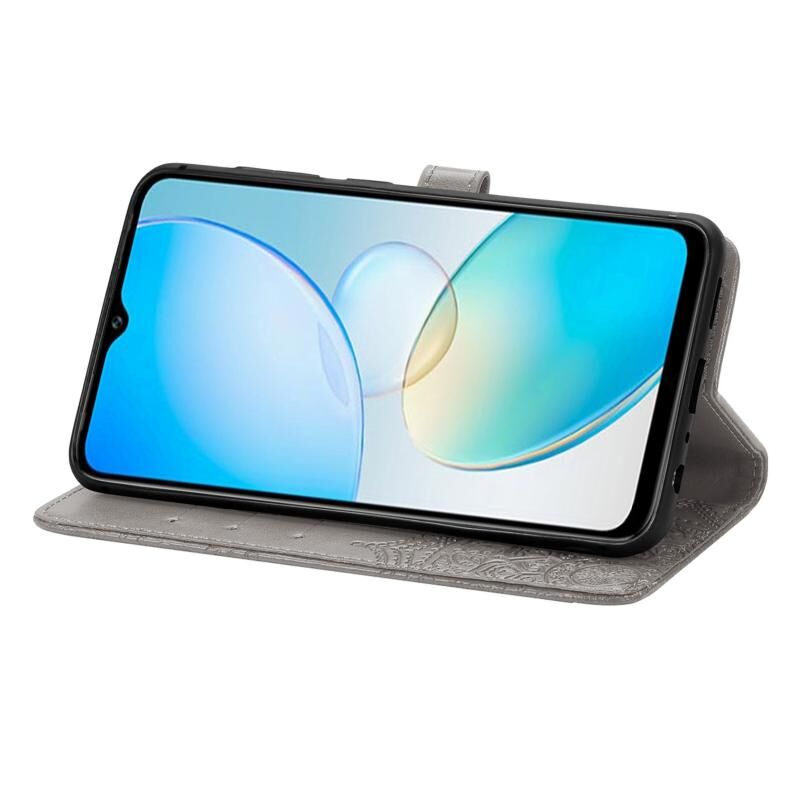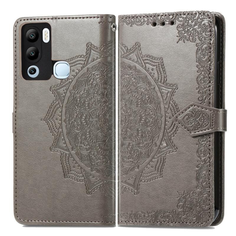 Για Infinix Hot 12i Mandala λουλούδι ανάγλυφο δερμάτινη θήκη τηλεφώνου (γκρι)