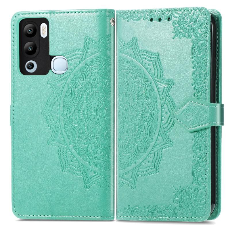 Για Infinix Hot 12i Mandala λουλούδι ανάγλυφο δερμάτινη θήκη τηλεφώνου (πράσινο)