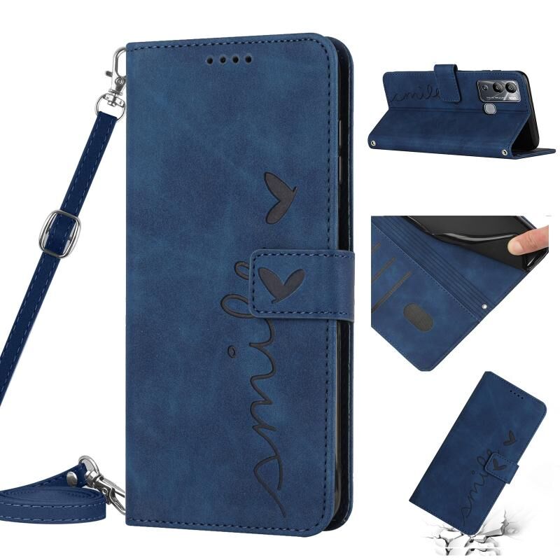 Για Infinix Hot 12i δέρμα αίσθηση καρδιά μοτίβο δερμάτινη θήκη τηλεφώνου με κορδόνι (μπλε)