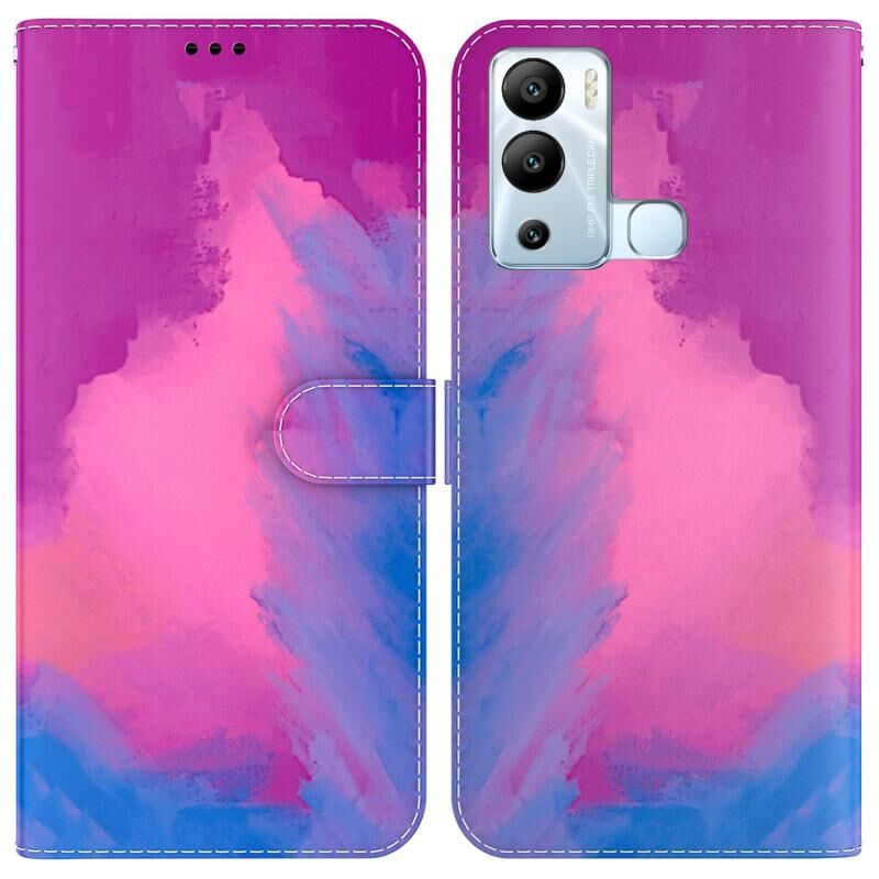 Για το Infinix Hot 12i Υδατογραφία μοτίβο οριζόντια Flip δέρμα τηλέφωνο υπόθεση (μοβ κόκκινο)