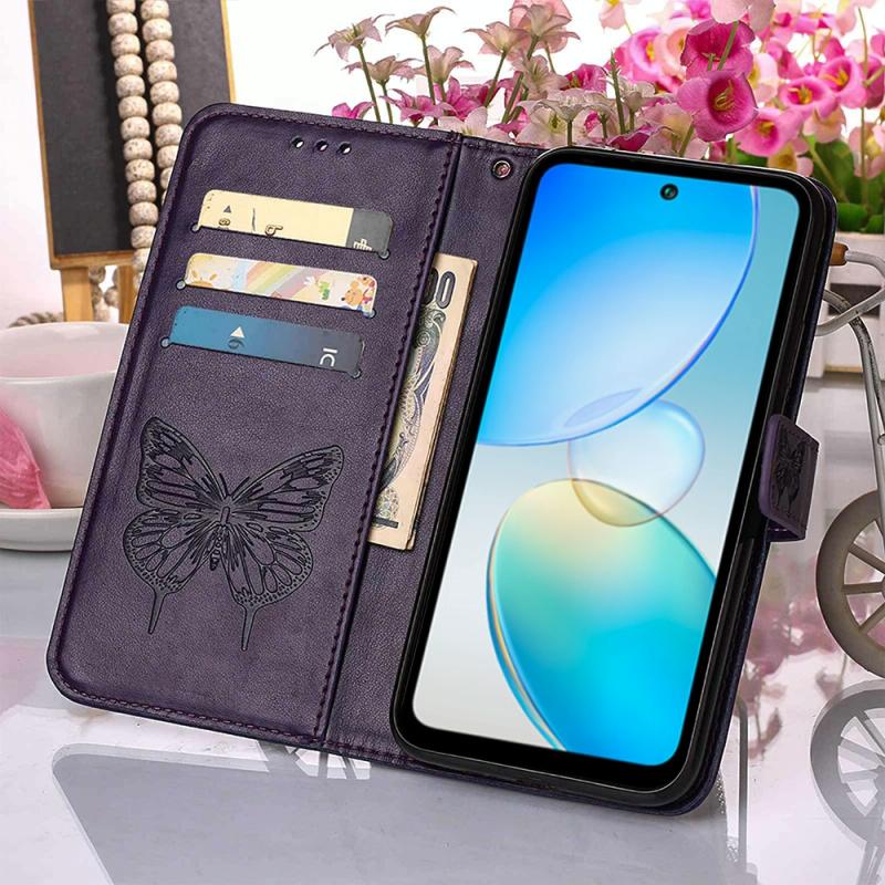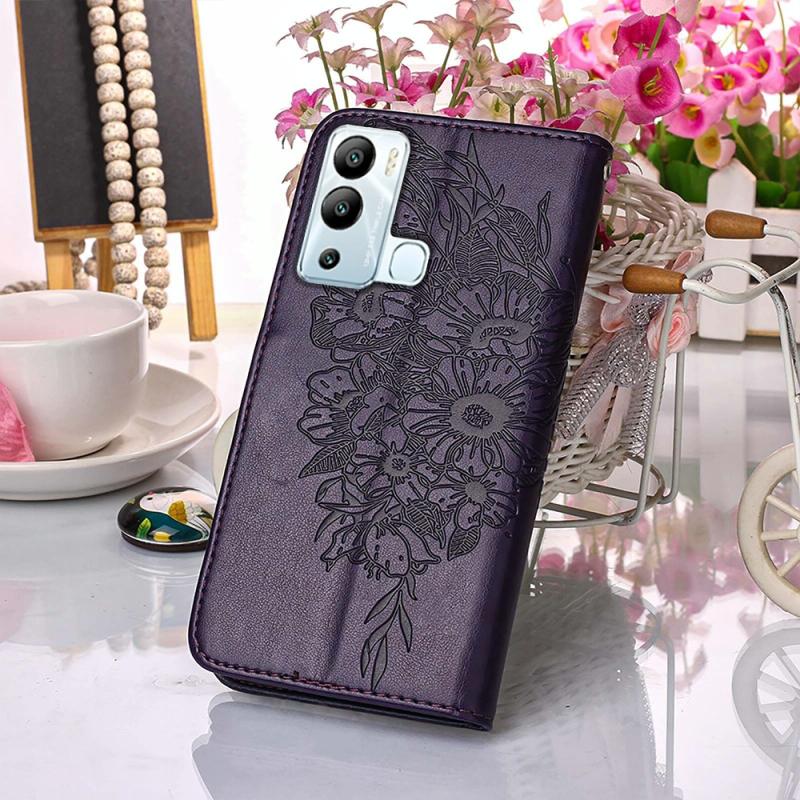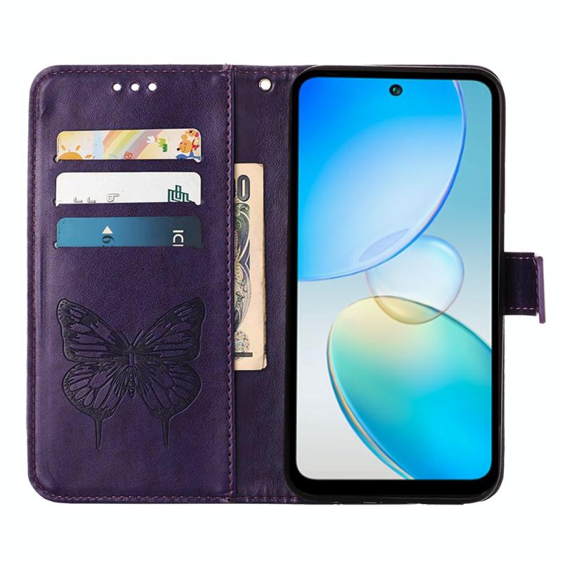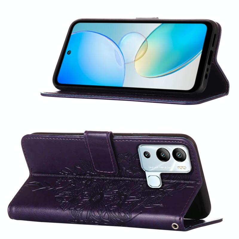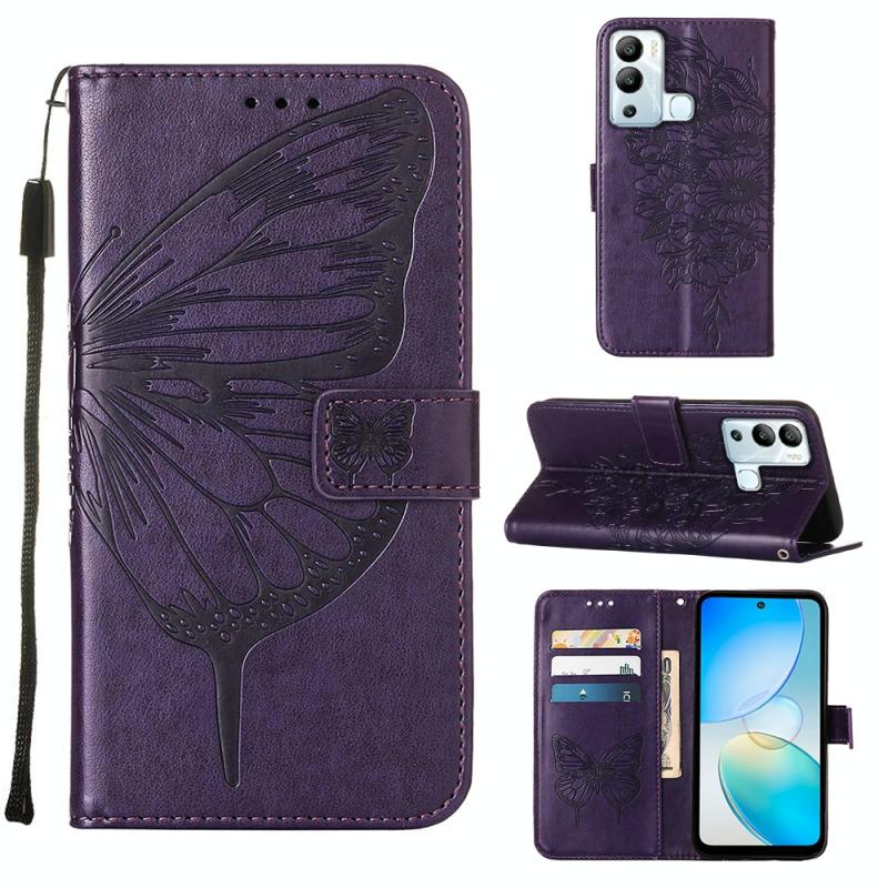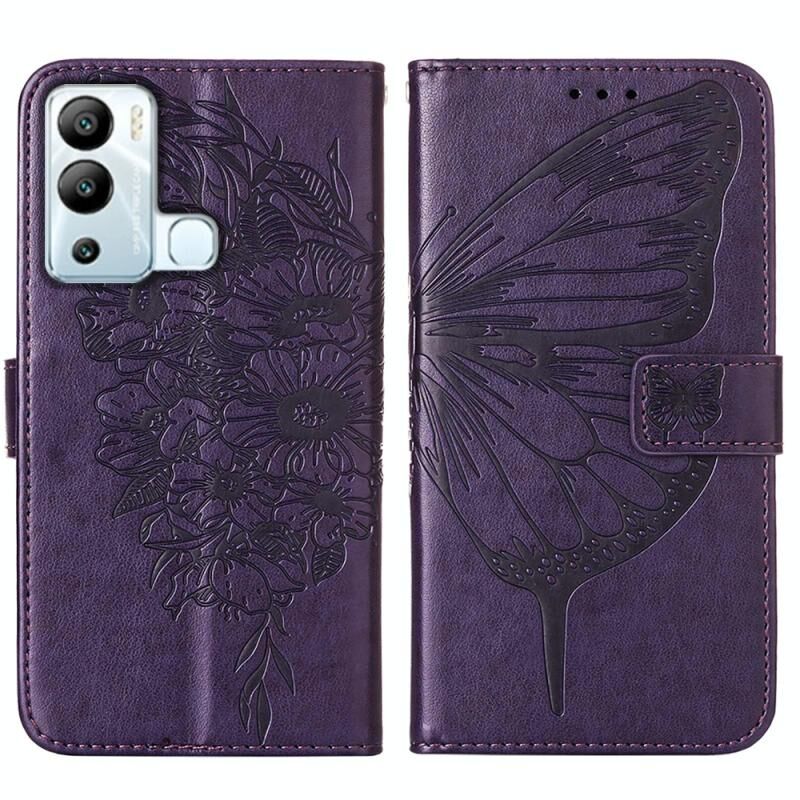 Θήκη τηλεφώνου από δέρμα με ανάγλυφο σχέδιο πεταλούδας, τύπου flip, για Infinix Hot 12i X665 (Σκούρο μωβ)