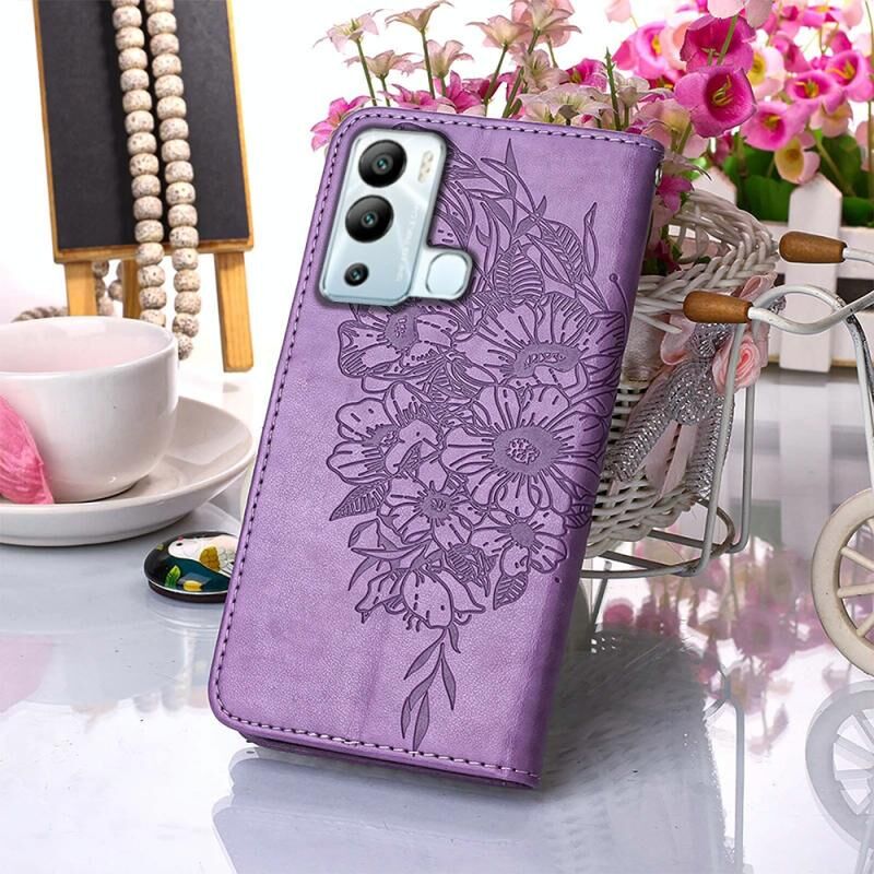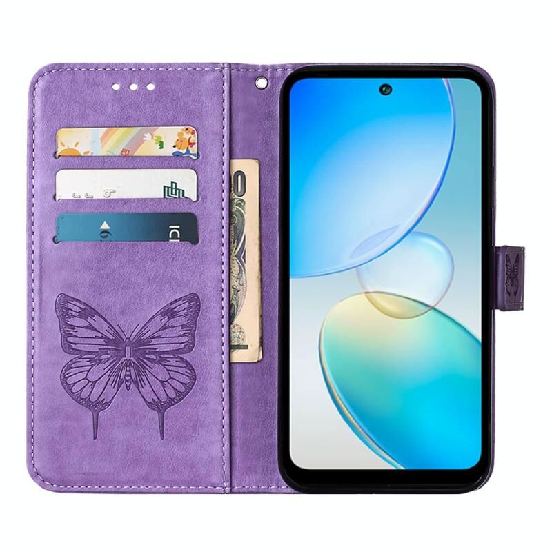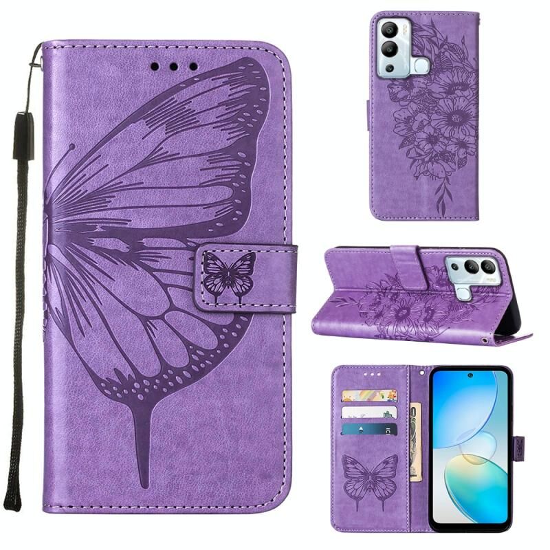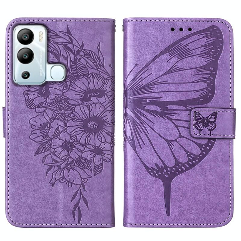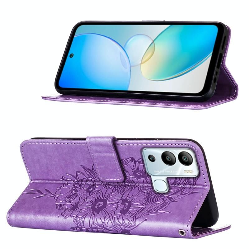 Θήκη τηλεφώνου από δέρμα με ανάγλυφο σχέδιο πεταλούδας, τύπου flip, για Infinix Hot 12i X665 (Μωβ)