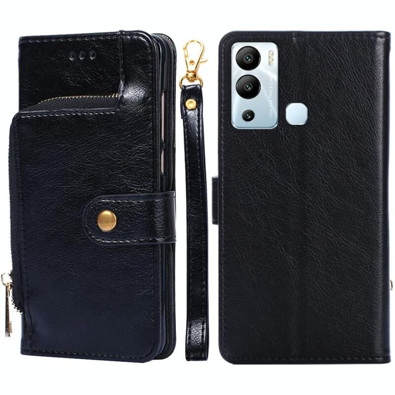 Για Infinix Hot 12i φερμουάρ τσάντα δερμάτινη θήκη τηλεφώνου (μαύρο)