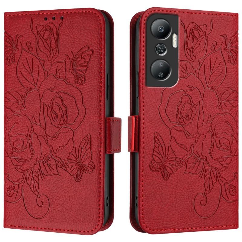 Για Infinix Hot 20 4G ανάγλυφο Rose RFID Anti-theft δερμάτινη θήκη τηλεφώνου (κόκκινο)