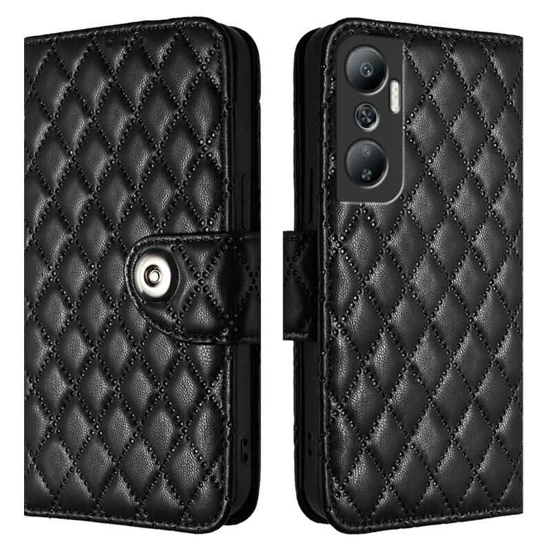 Για το Infinix Hot 20 4G X6826 Rhombic Texture Flip δερμάτινη θήκη τηλεφώνου με κορδόνι (μαύρο)