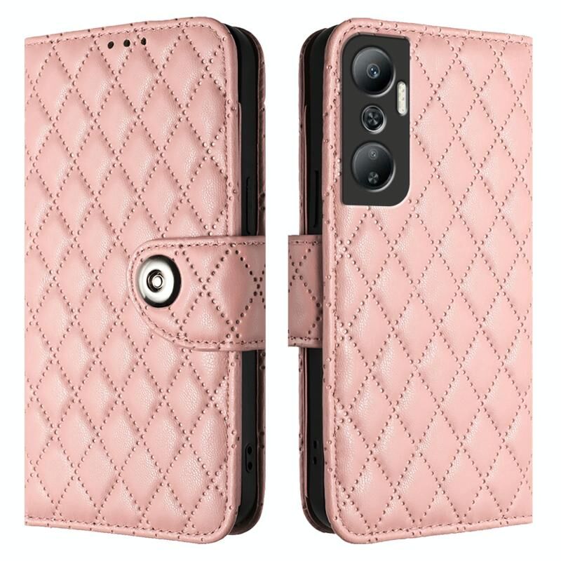 Για το Infinix Hot 20 4G X6826 Rhombic Texture Flip δερμάτινη θήκη τηλεφώνου με κορδόνι (Coral Pink)