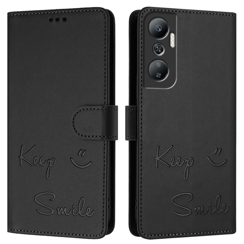Για Infinix Hot 20 4G X6826 Χαμόγελο ανάγλυφο RFID δερμάτινη θήκη τηλεφώνου (Μαύρο)