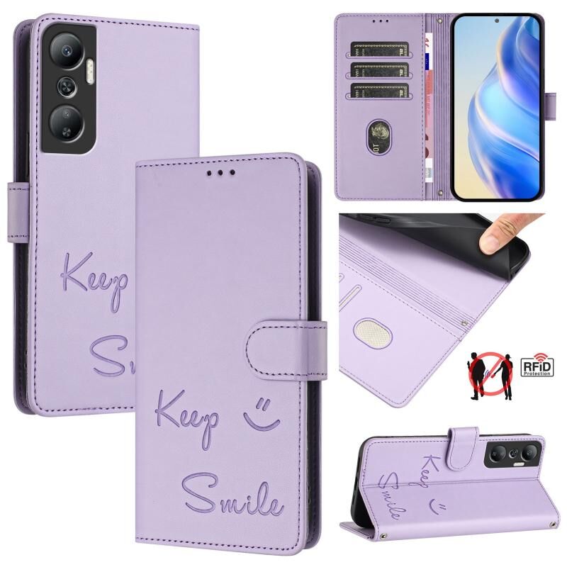 Για Infinix Hot 20 4G X6826 Χαμόγελο ανάγλυφο RFID δερμάτινη θήκη τηλεφώνου (Light Purple)