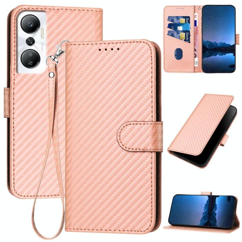 Για Infinix Hot 20 4G YX0070 Carbon Fiber πόρπη δερμάτινη θήκη τηλεφώνου με κορδόνι (ροζ)