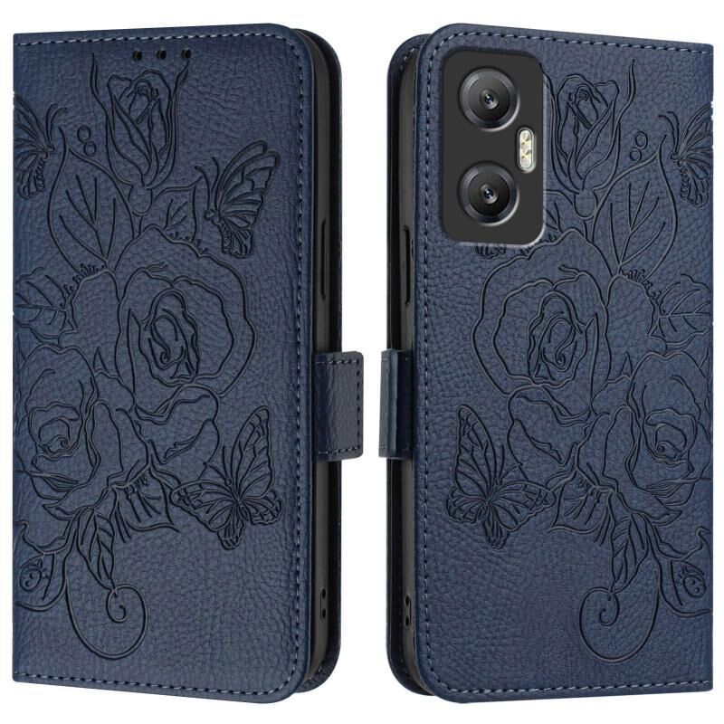 Για Infinix Hot 20 5G ανάγλυφο Rose RFID Anti-theft δερμάτινη θήκη τηλεφώνου (σκούρο μπλε)