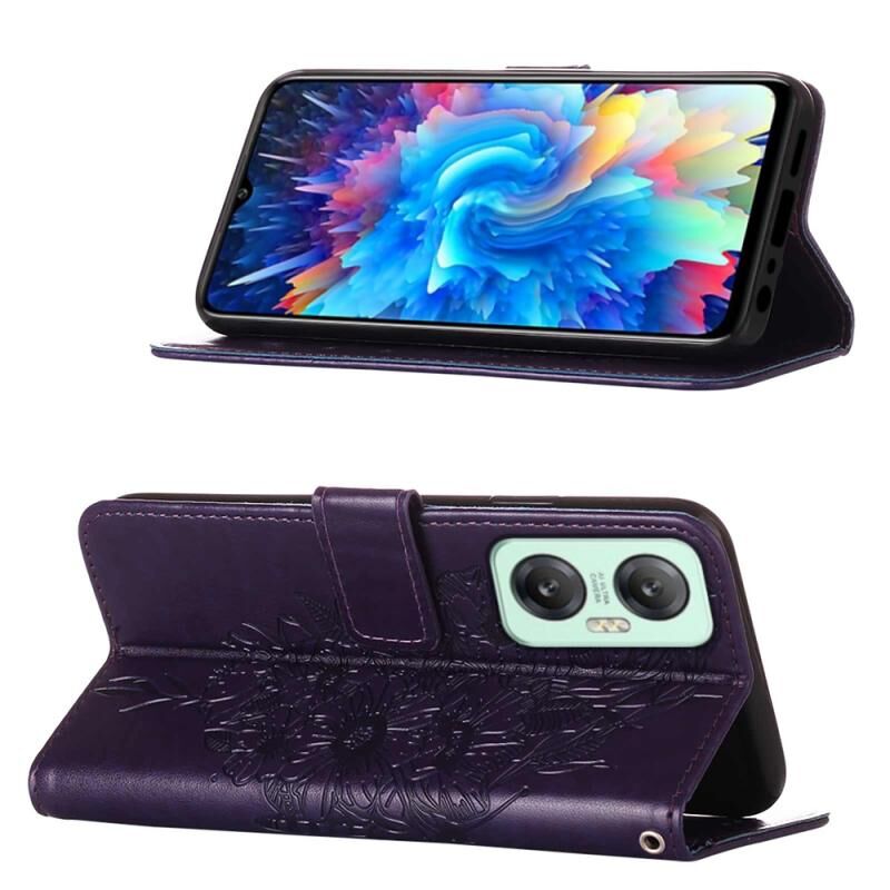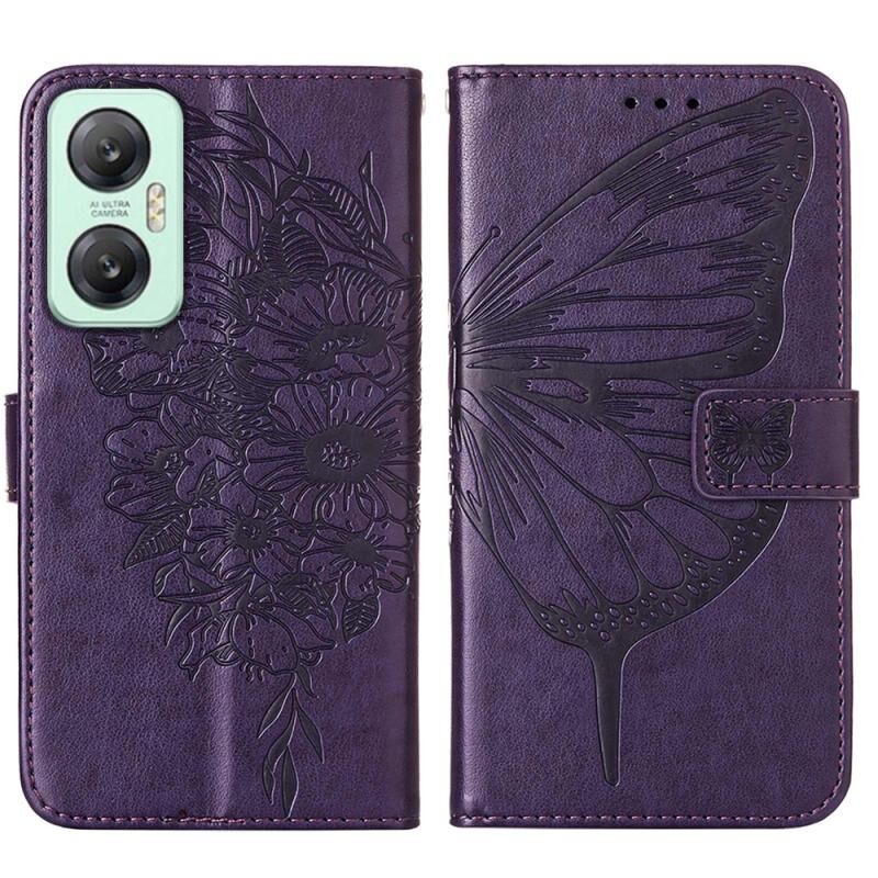Θήκη τηλεφώνου από δέρμα με ανάγλυφο σχέδιο πεταλούδας, τύπου flip, για Infinix Hot 20 5G X666 / X66B (Μπλε)