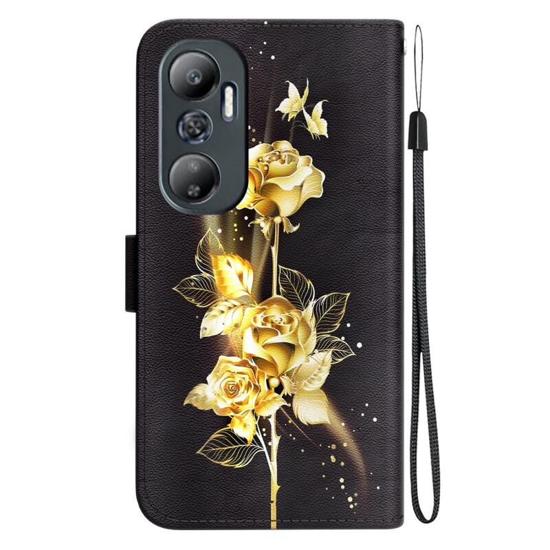 Θήκη τηλεφώνου από δέρμα με πολύχρωμη σχεδίαση και κρυσταλλική υφή για Infinix Hot 20 (Μωβ Παιώνια)