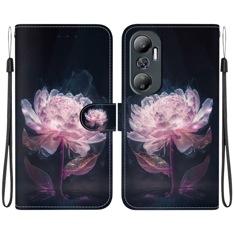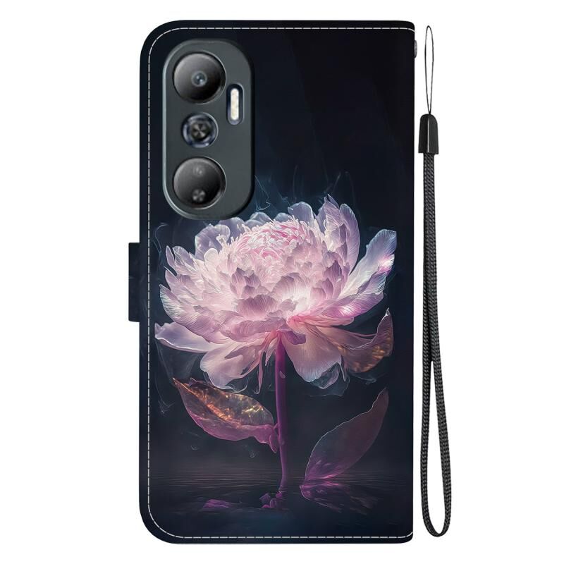 Θήκη τηλεφώνου από δέρμα με πολύχρωμη σχεδίαση και κρυσταλλική υφή για Infinix Hot 20 (Μωβ Παιώνια)