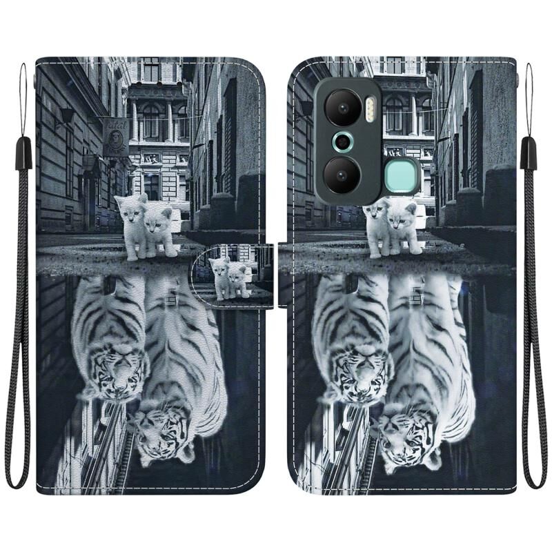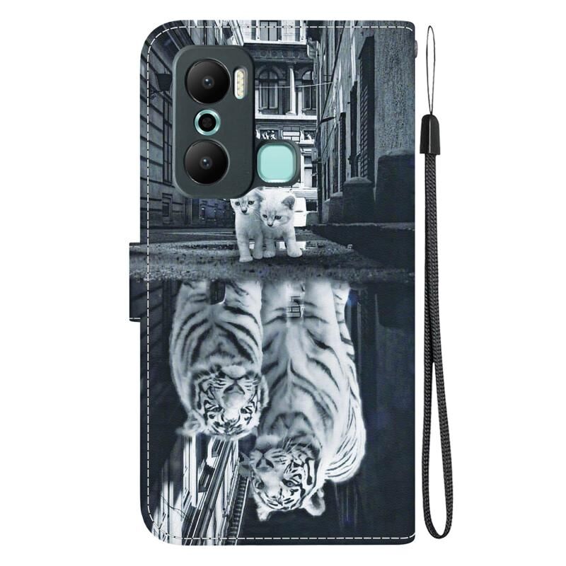 Θήκη τηλεφώνου από δέρμα με πολύχρωμη σχεδίαση κρυστάλλινης υφής για Infinix Hot 20 Play (Αντανάκλαση Γάτας Τίγρη)