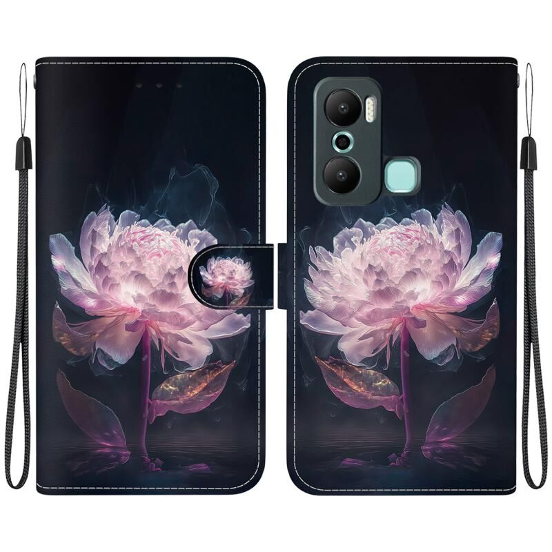 For Infinix Hot 20 Play Crystal Texture Colored Drawing Leather Phone Case(Purple Peony)