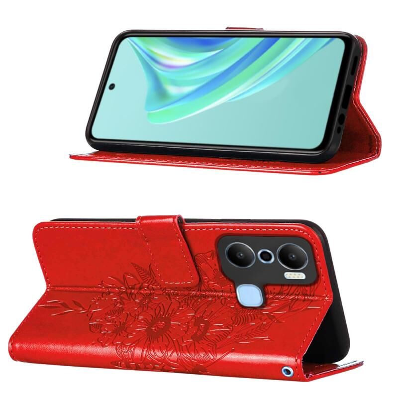 Θήκη τηλεφώνου από δέρμα με ανάγλυφο σχέδιο πεταλούδας για Infinix Hot 20 Play (Μπλε)